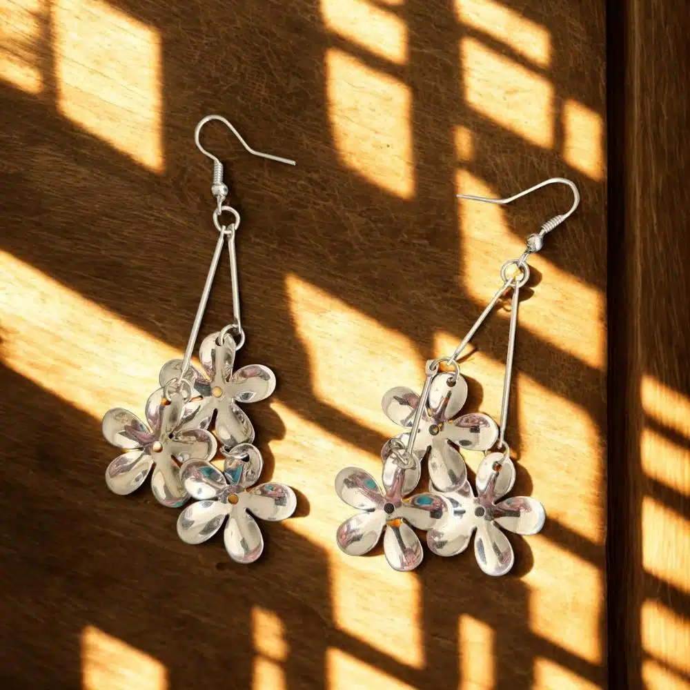 Make a gorgeous statement with these sensational dangly flower earrings. Expertly polished to achieve a super shiny, mirror-like finish, these accessories are designed to catch every light source and add a brilliant sparkle to your look.