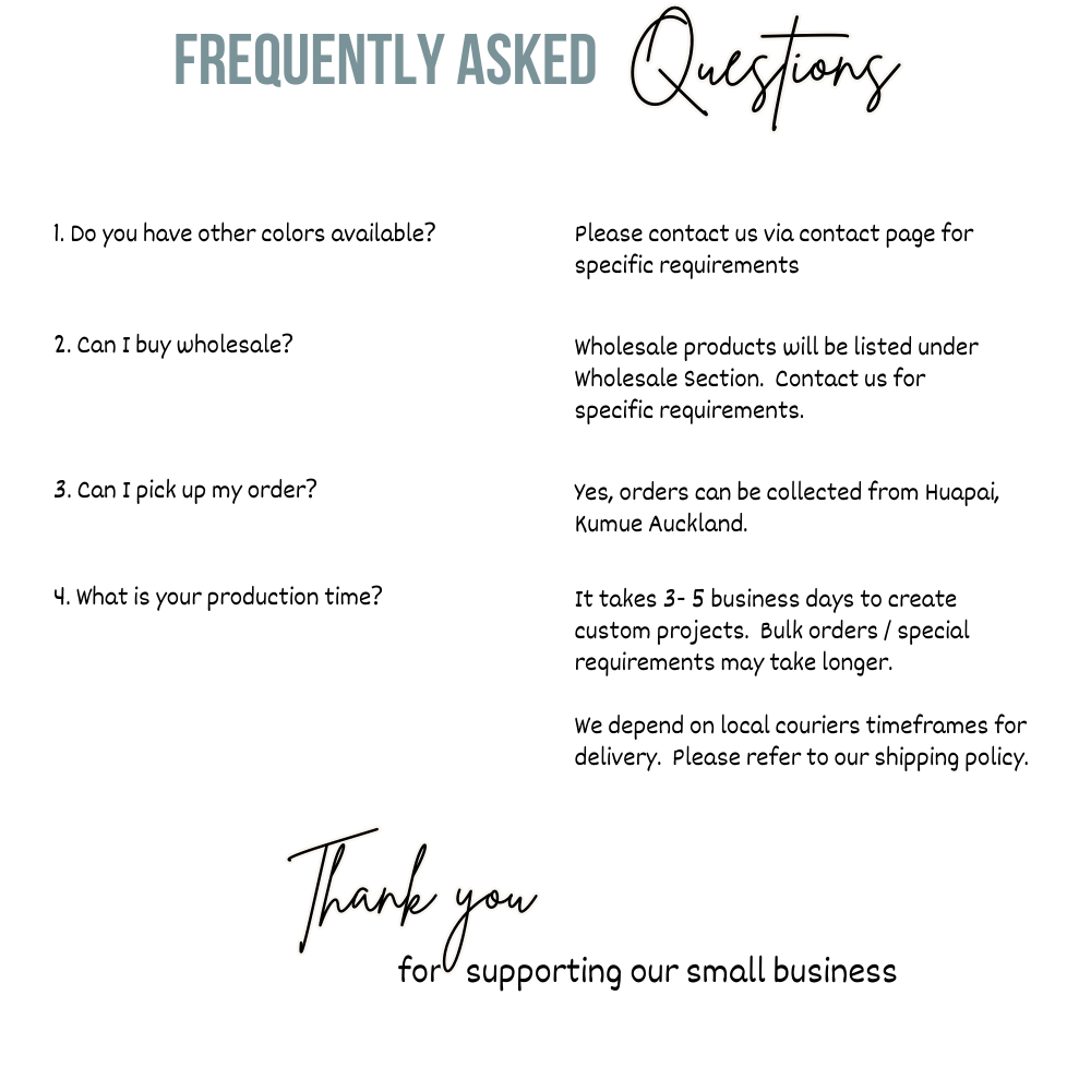 We use New Zealand Couriers to ship our products nationwide and we are dependent on their shipping timeframes which can take up up to 2 days for North island urban and up to 3 days for South Island urban deliveries.
