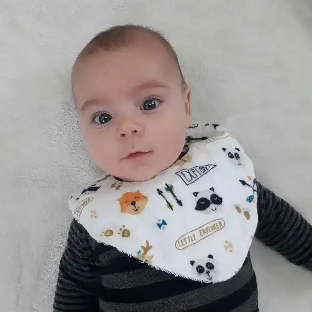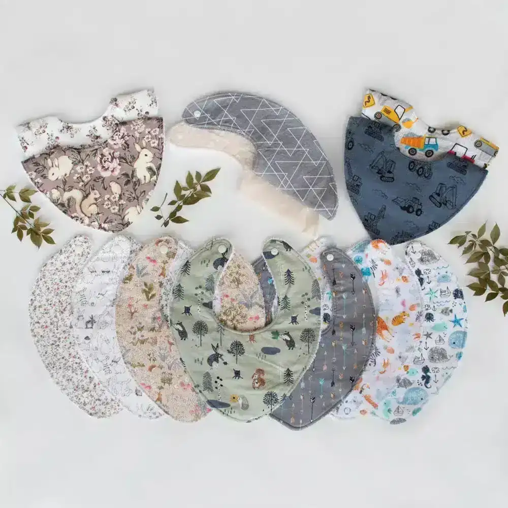 These bibs have toweling behind for absorbency and snaps which make it harder for your child to pull them off.