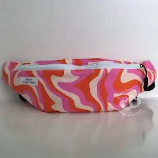 Homemade bum bags made with special care this bag is made of multi fabric colours in orange, pink and cream with additional pull tag on the zips for easier opening.