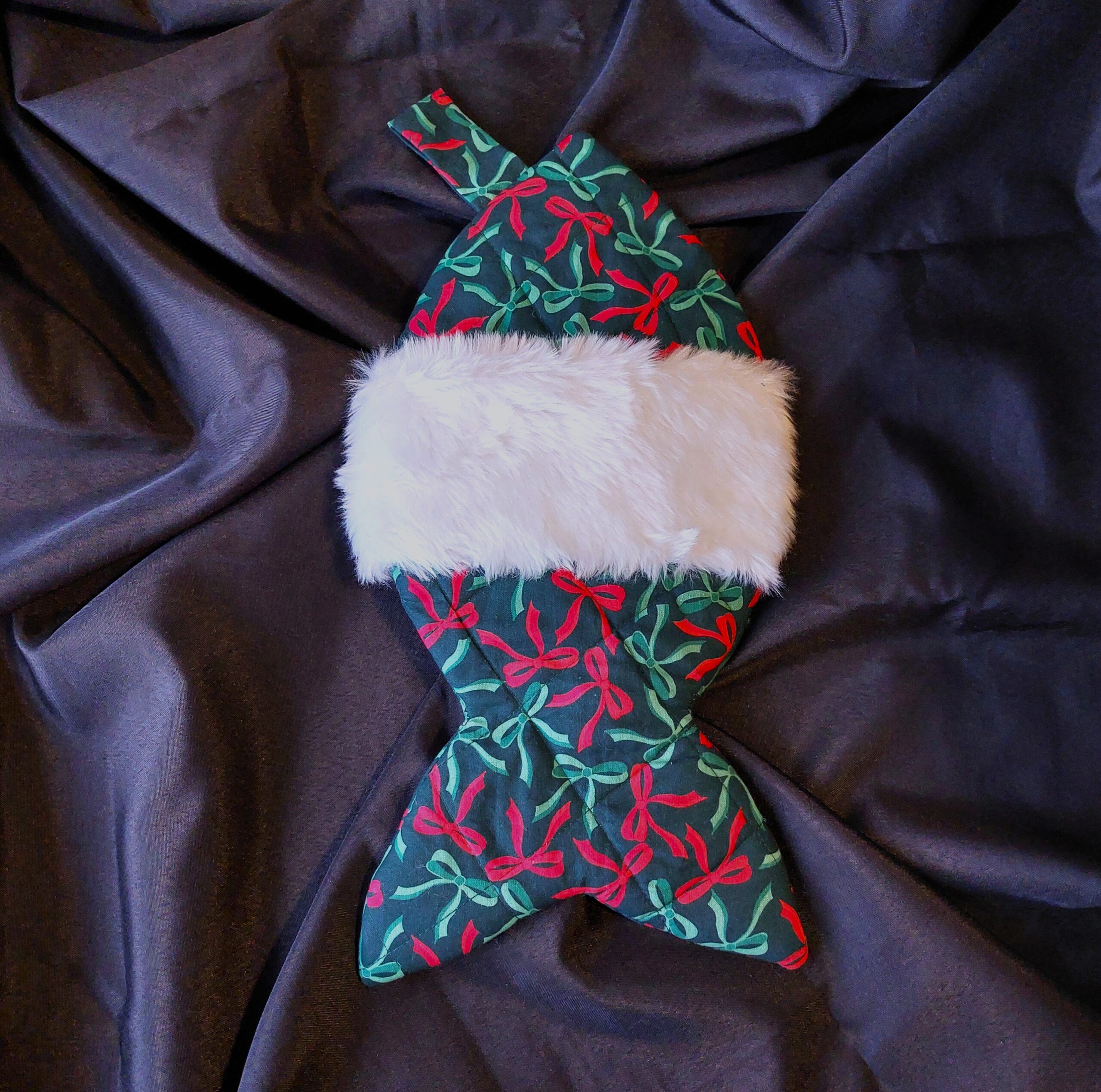 The fish and the bone have a quilted front with a faux-fur trimmed pocket perfect for popping presents inside.