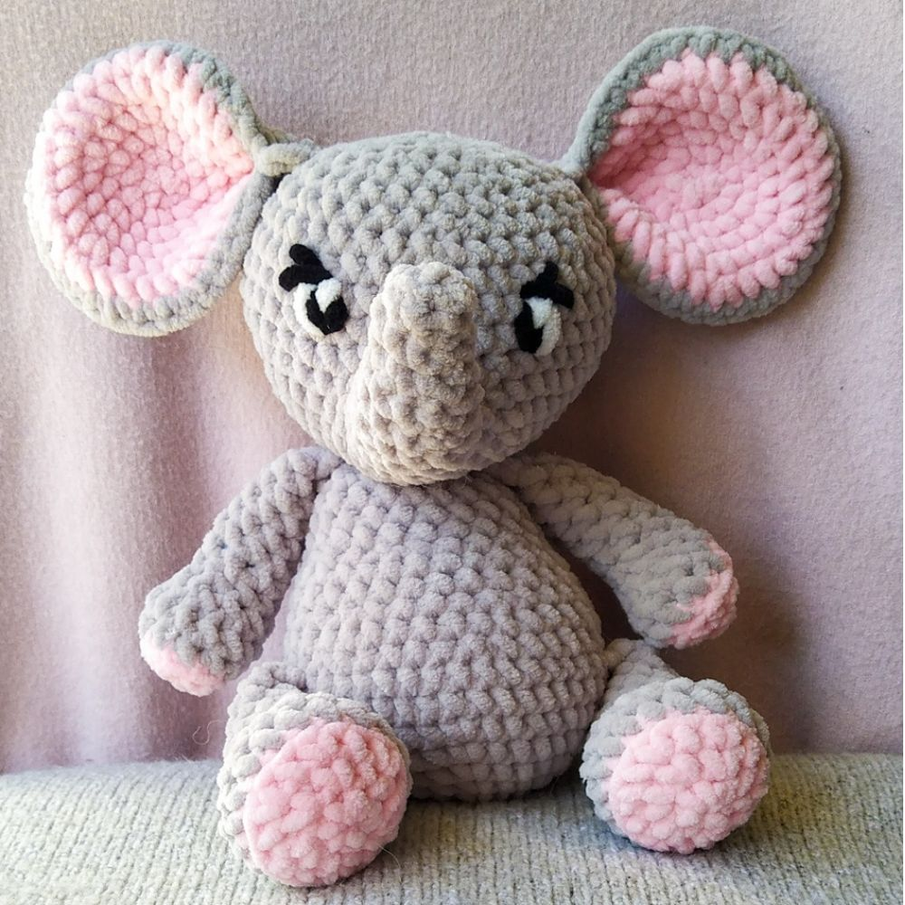 Introducing Ellie, the sweetest crochet elephant amigurumi you’ll ever meet! Measuring 14cm wide and 27cm high, Ellie is a chonky bundle of love with her big floppy ears and charming little trunk.