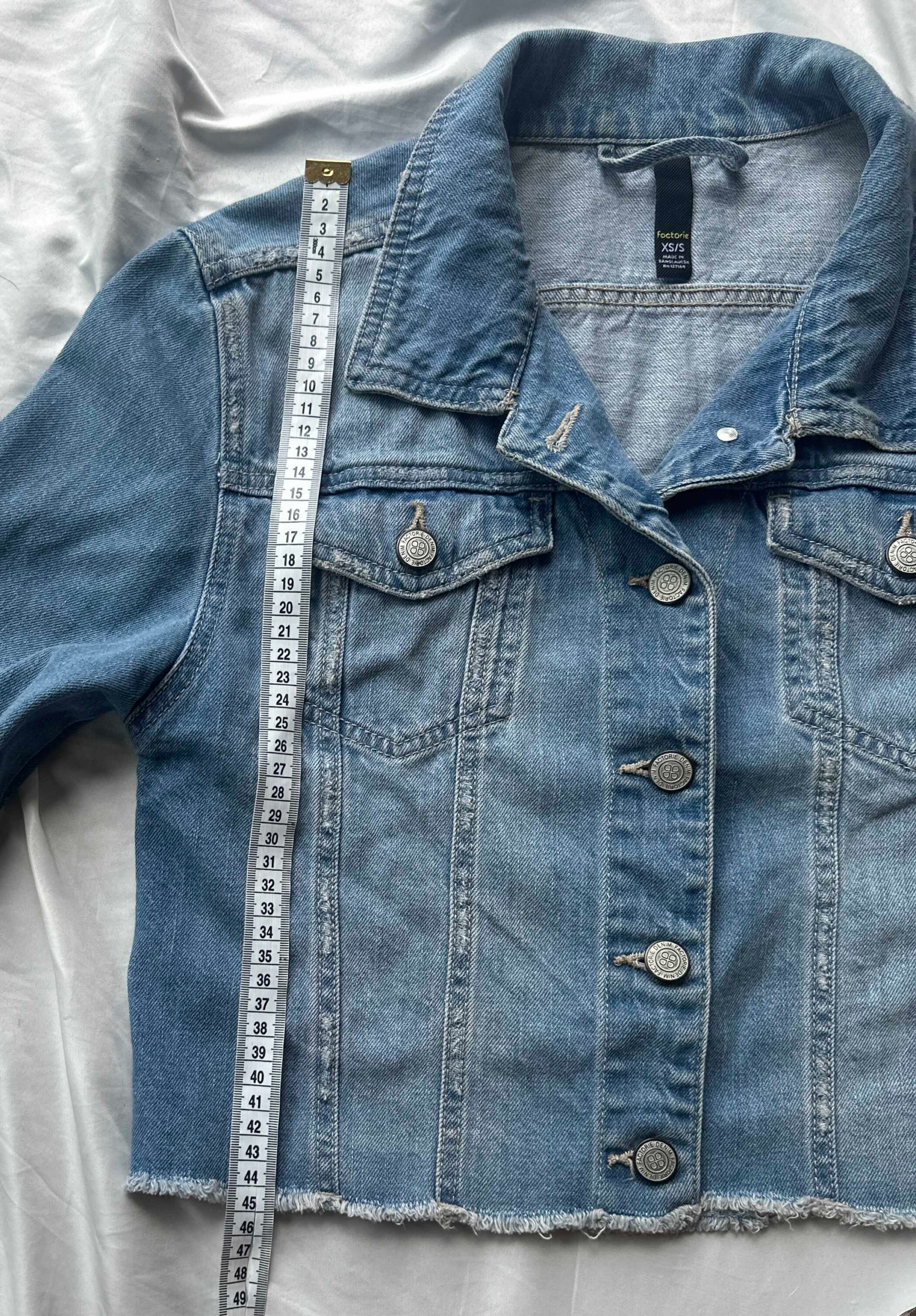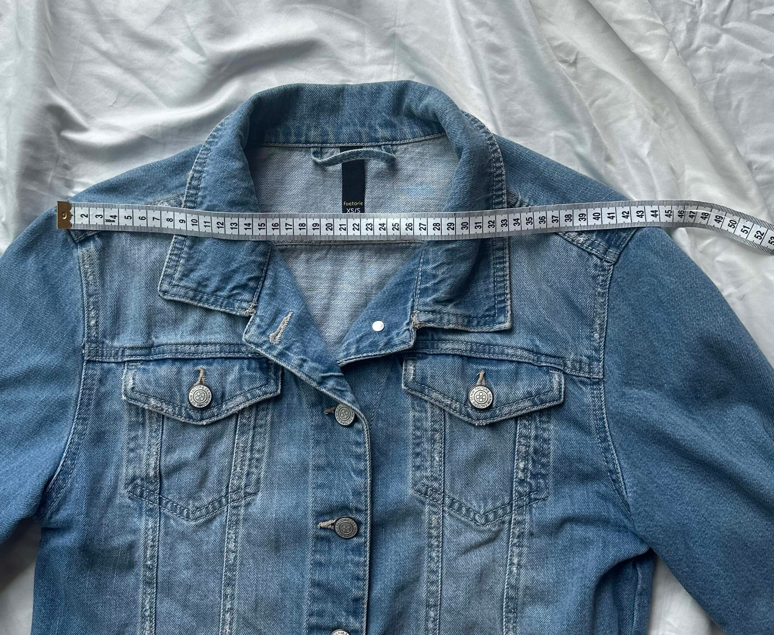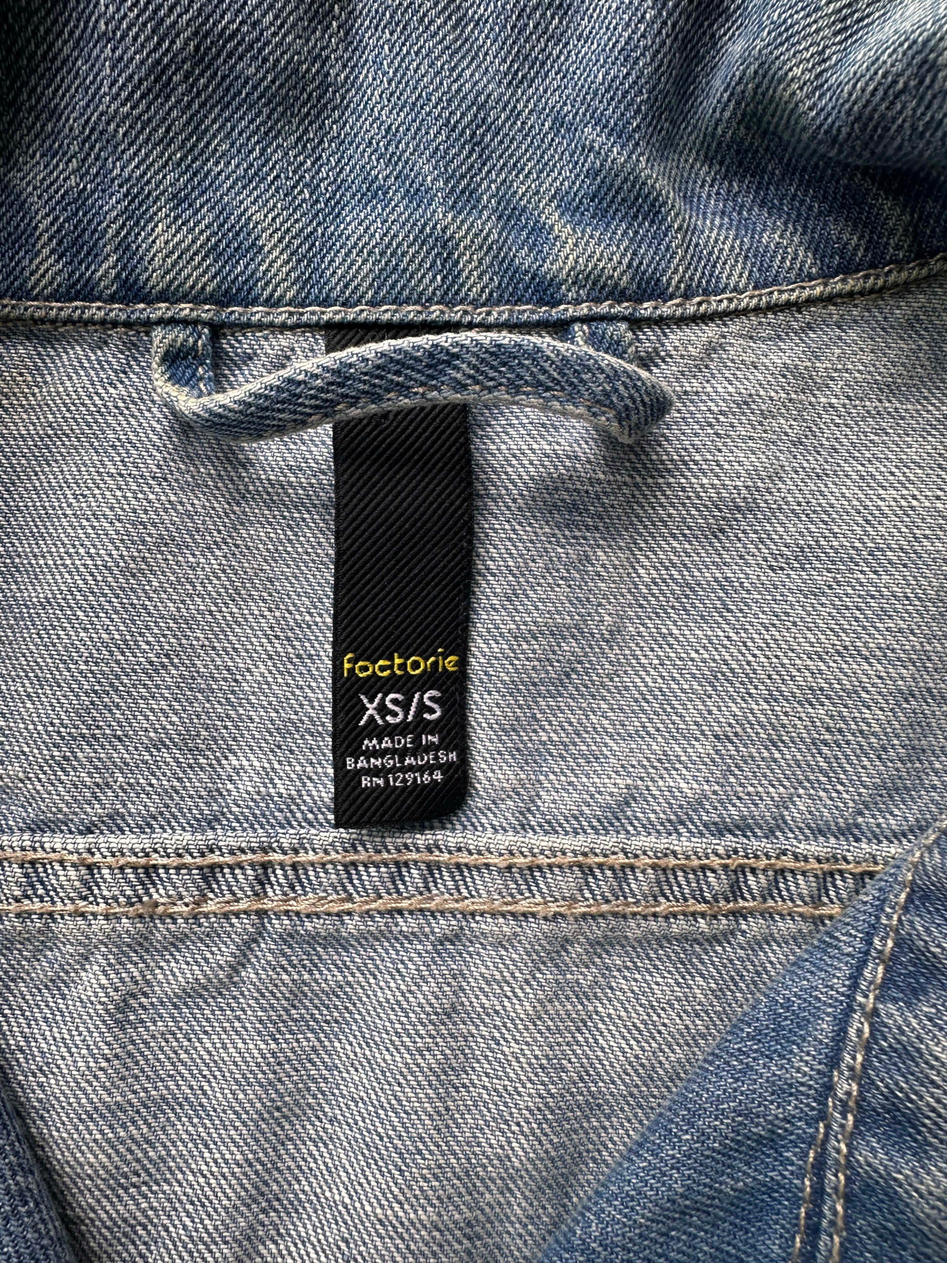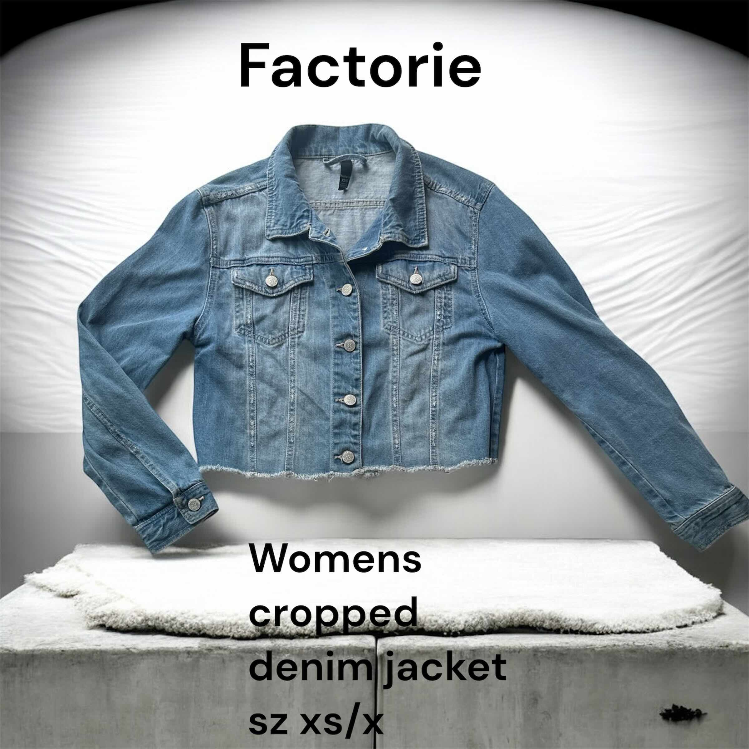 This is a gently used women’s cropped denim jacket, presented in excellent condition and featuring a stylish design.