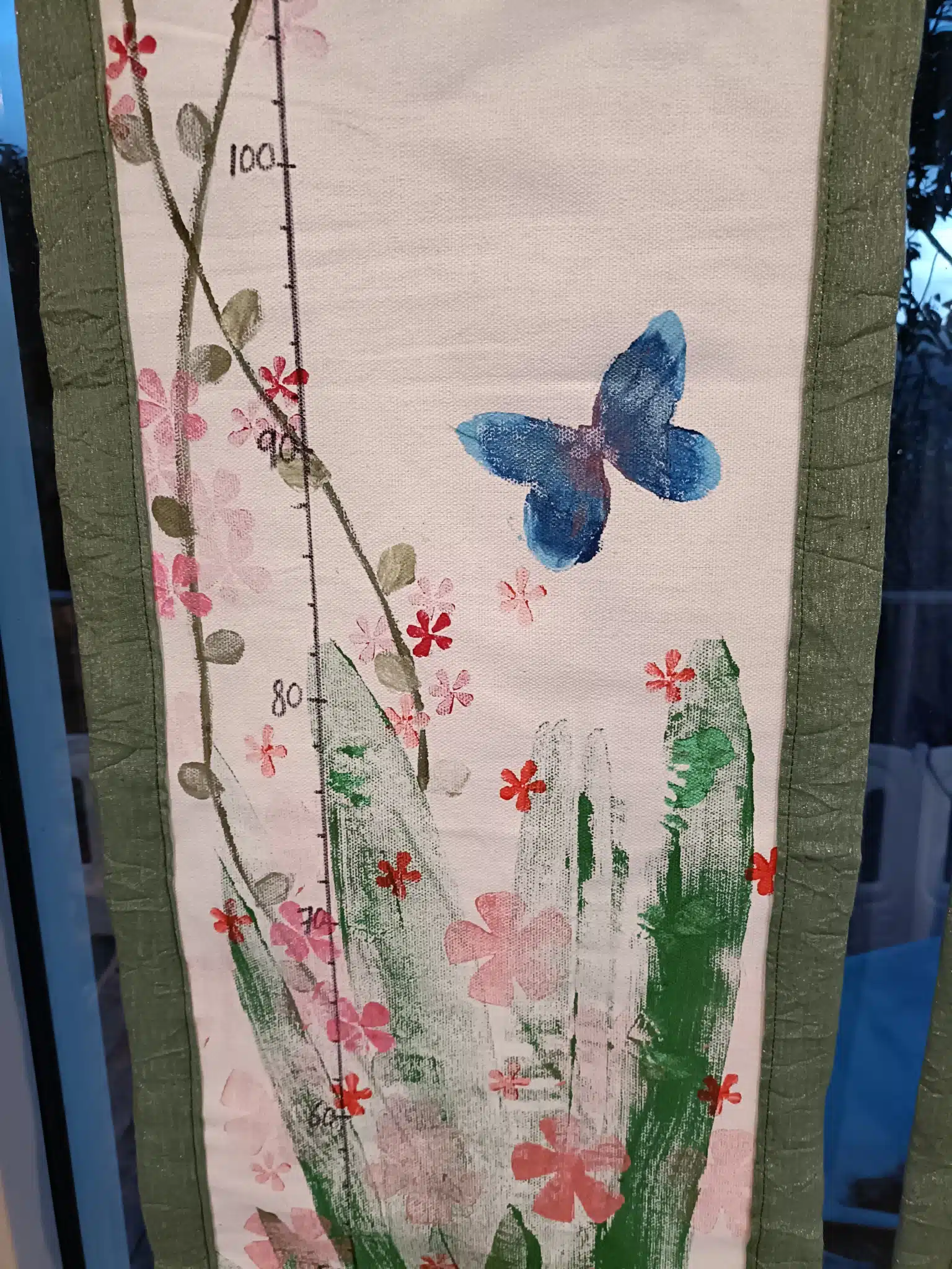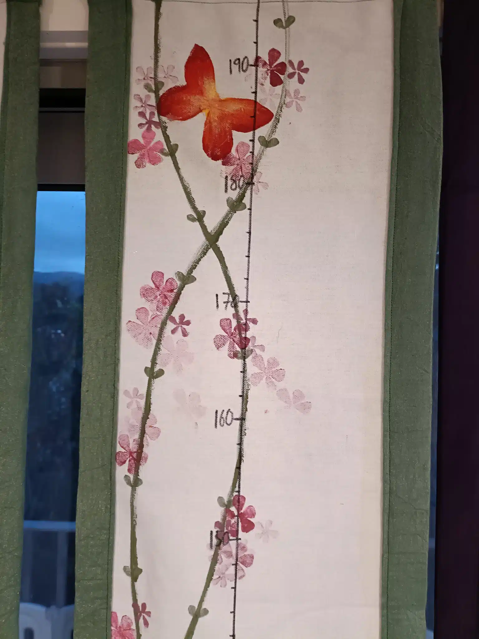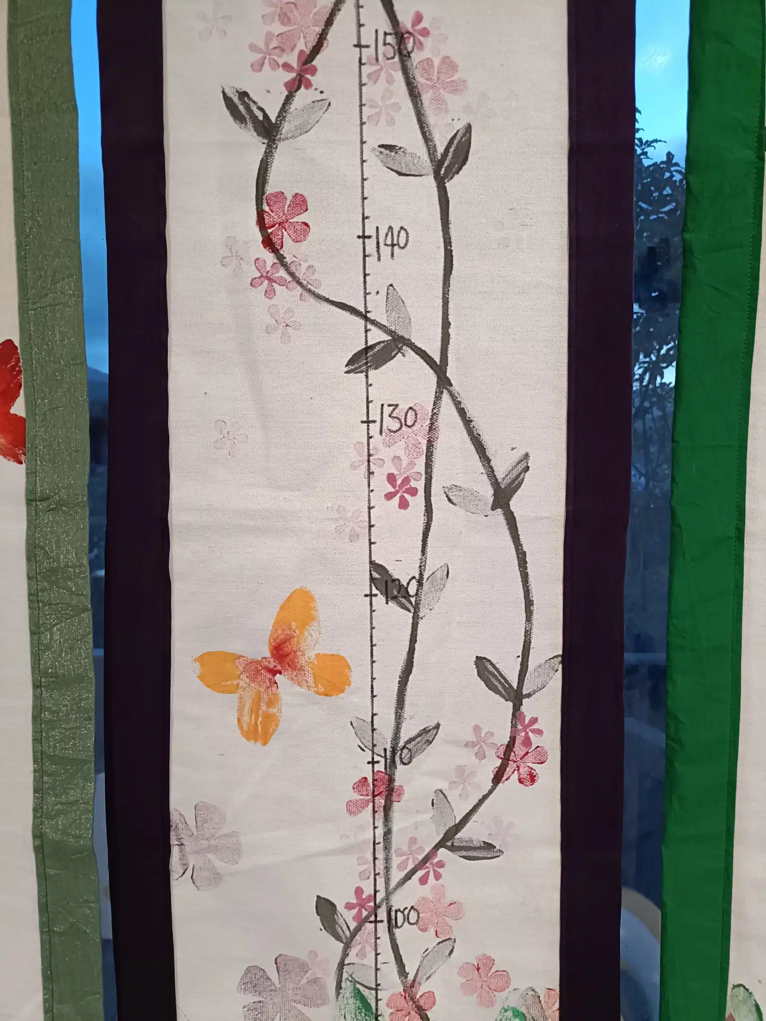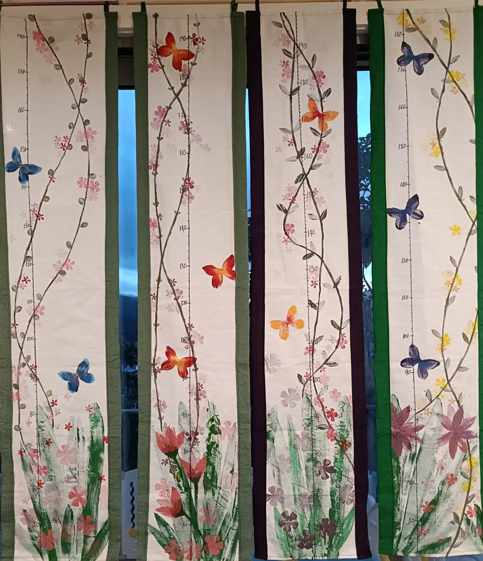 Unique, handpainted (acrylic on canvas) growth charts for children. Light and transportable, the perfect solution to the impermanence of our modern lives – easily take it with you when you move, no matter how often and how far.