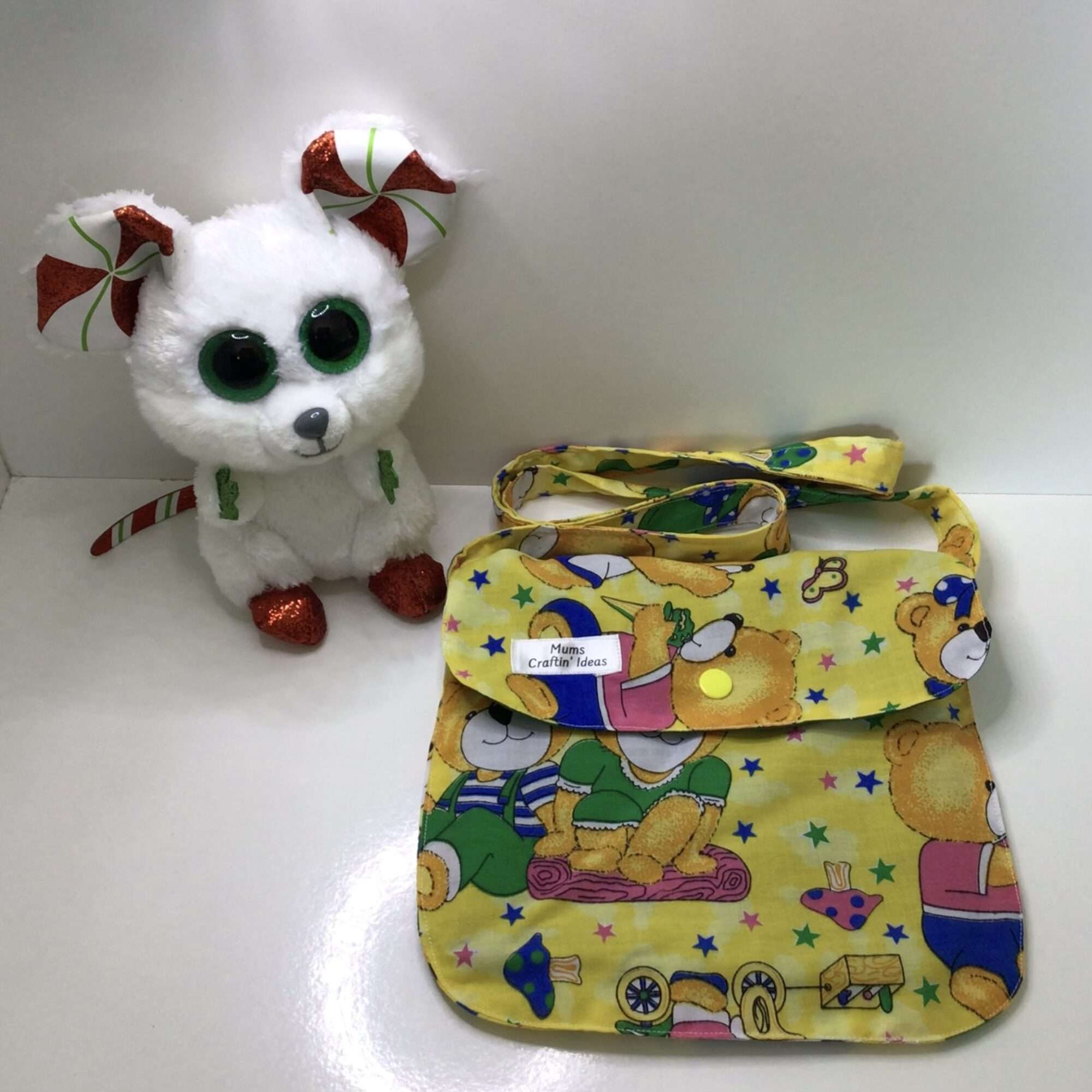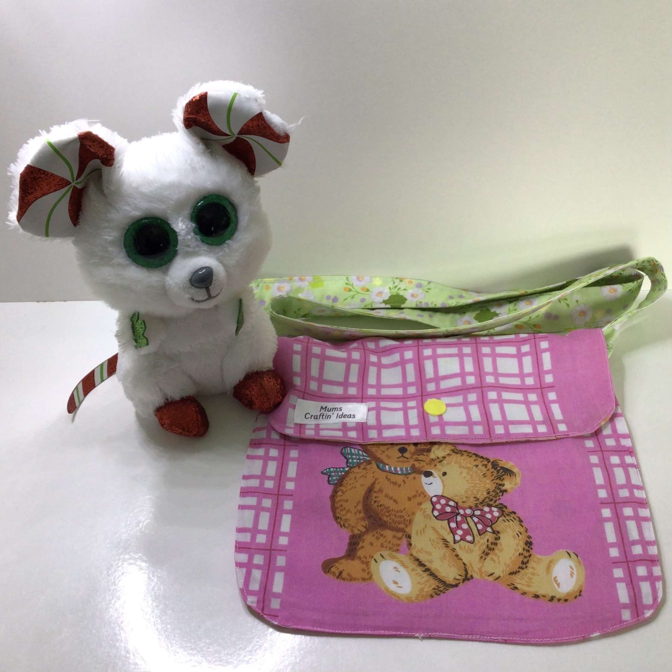 Does your wee girl like playing in your handbag? Now she can have her own wee bag to go on outings just like mum’s, nana’s, grandmothers. Your wee girl will love this little handmade handbag with snap closure flap to wear it around in the store or the mall. She can carry her favourite little toys, mini purse, tissues, or even lip gloss and be proud as punch with her little bag. She can wear it over her shoulder or across the body. (Accessories Not Included)