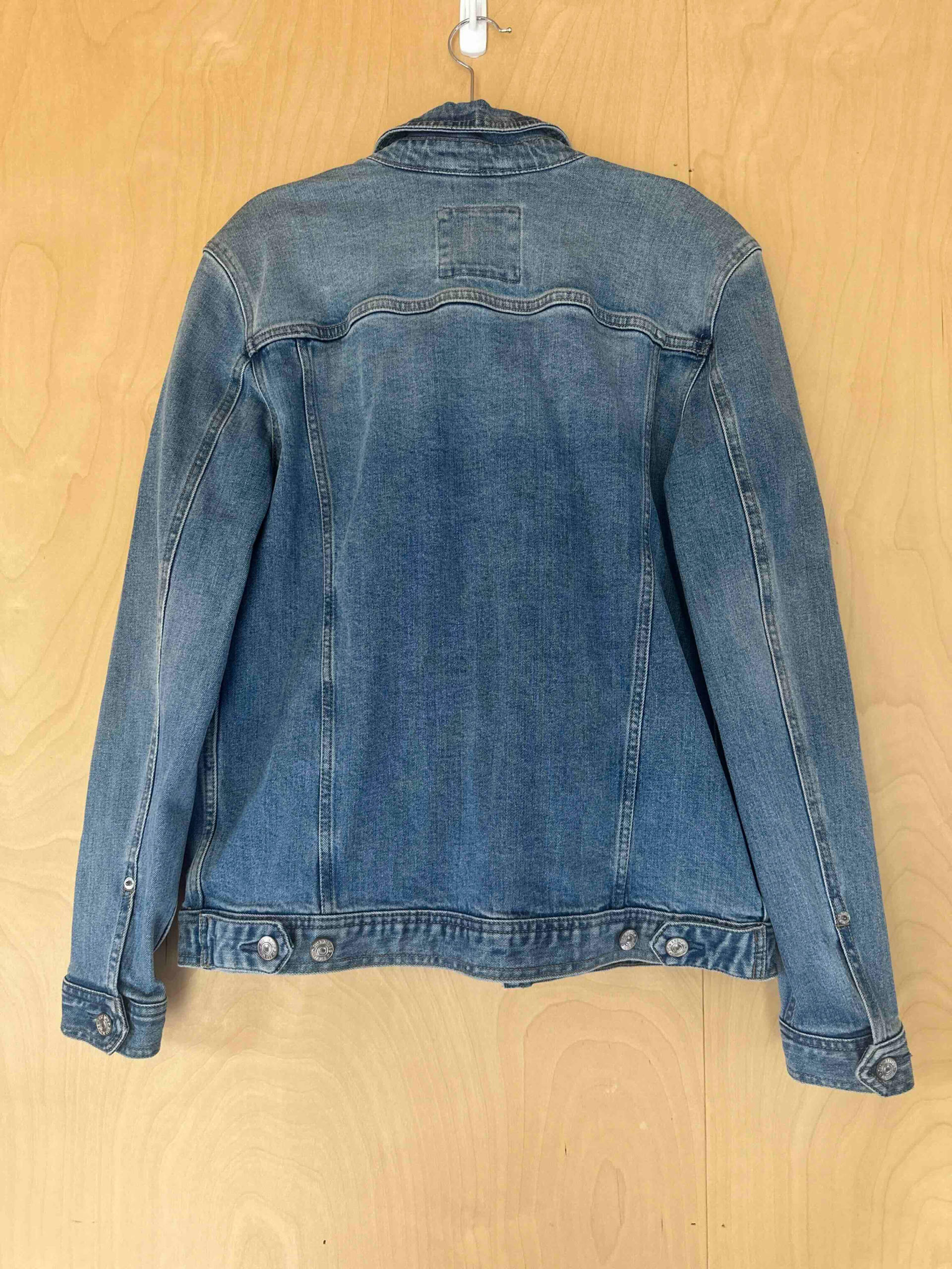 This pre-owned, stylish solid denim jacket is suitable for any occasion.