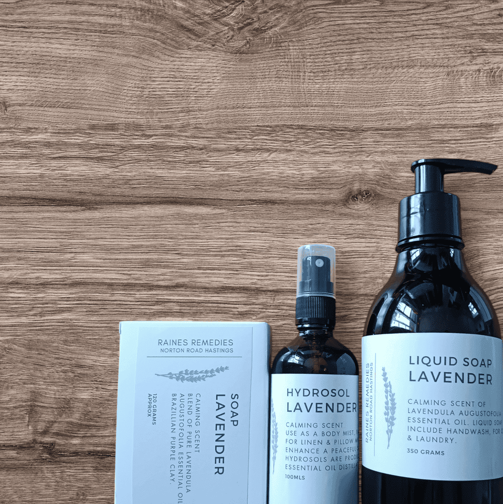 The Soap & Liquid Soap are made with Lavendula Augustofolia Essential Oil.