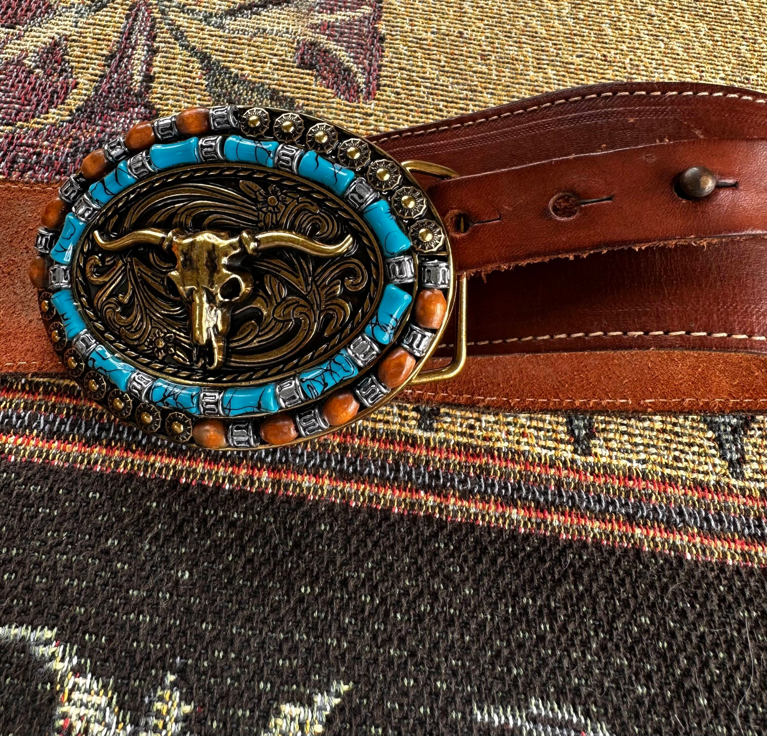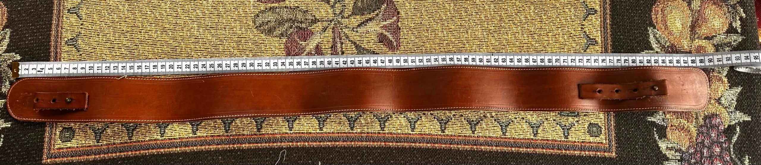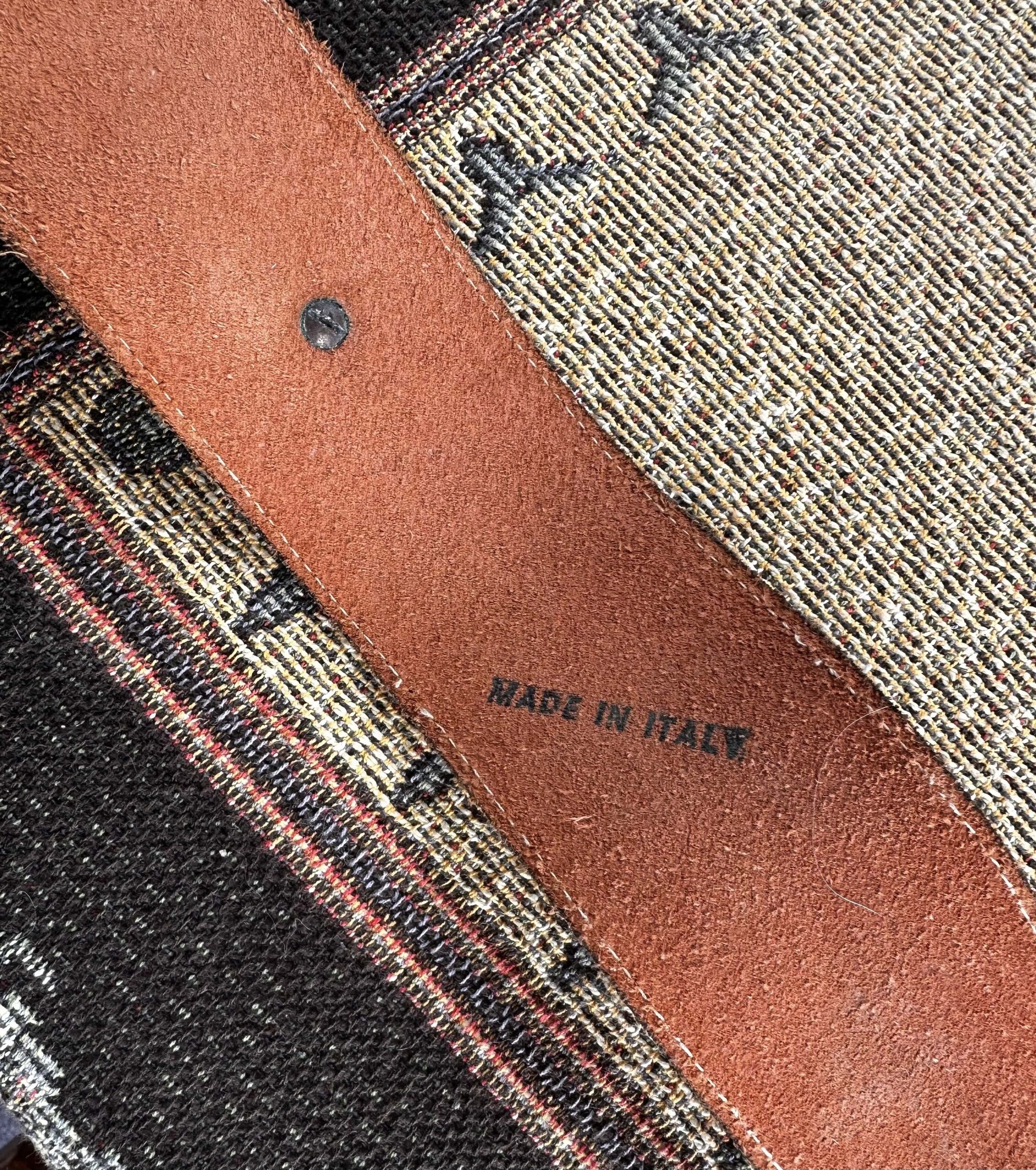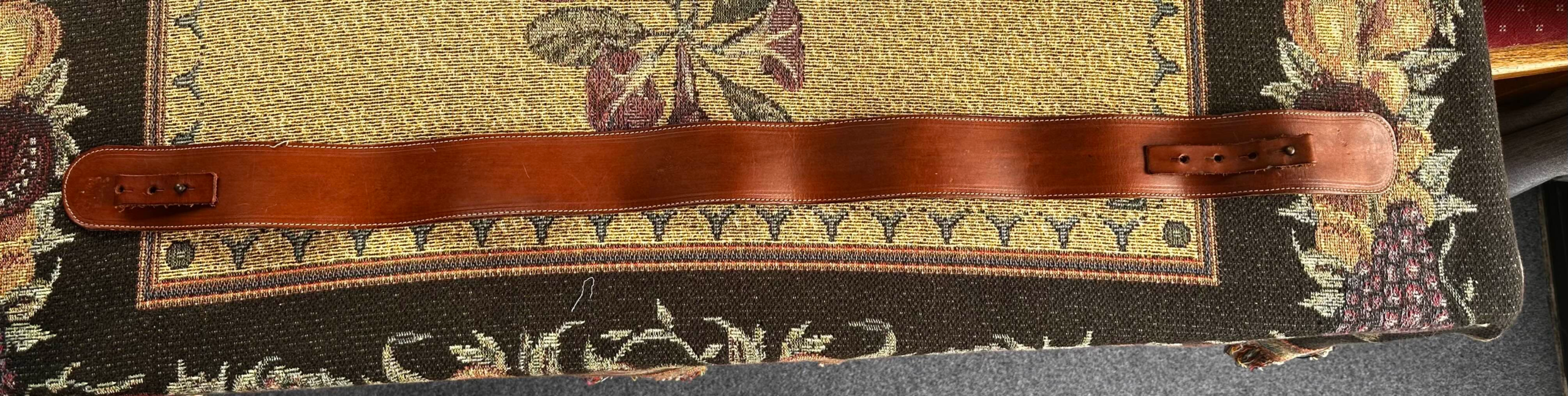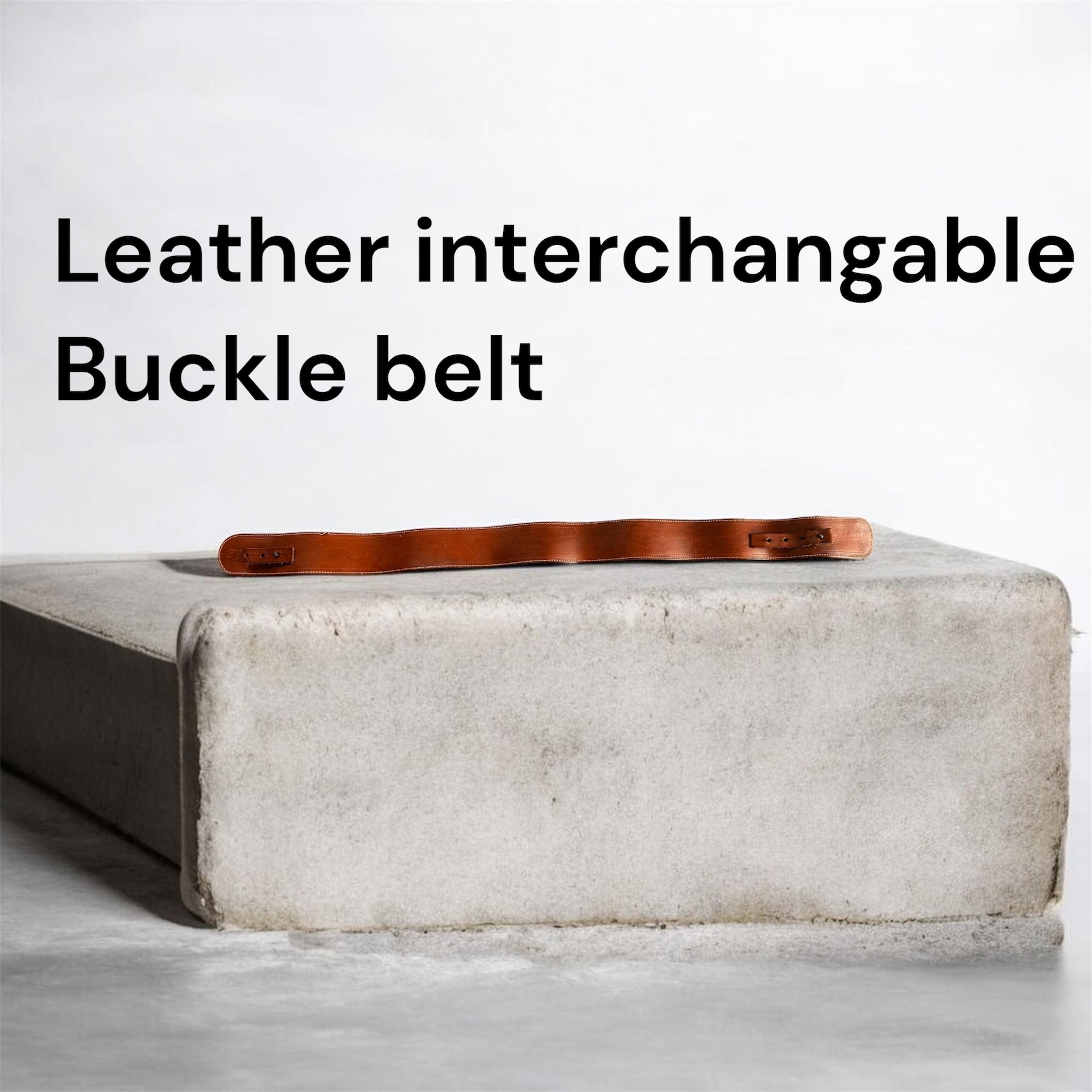 The belt is designed with attachments that enable the addition of a custom buckle.