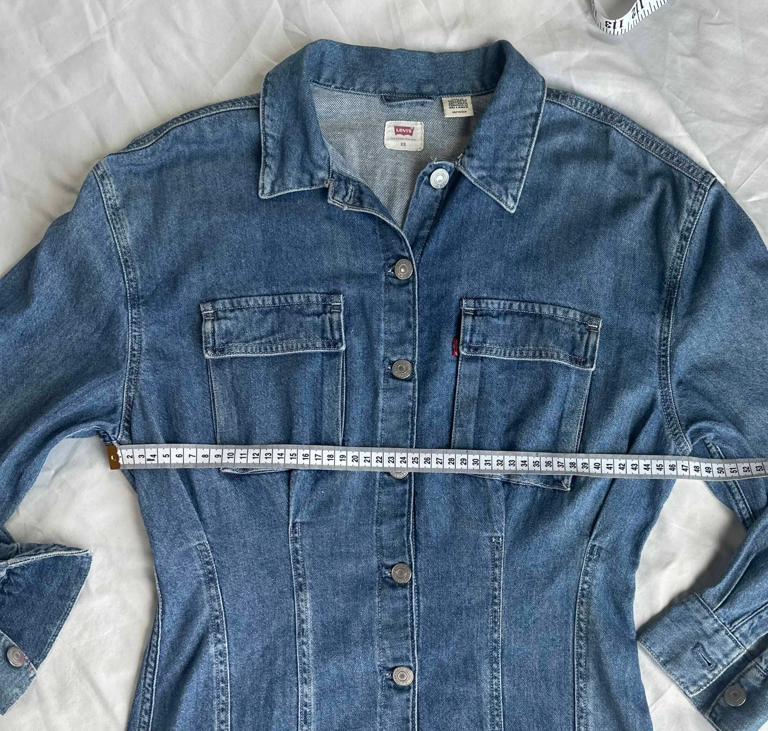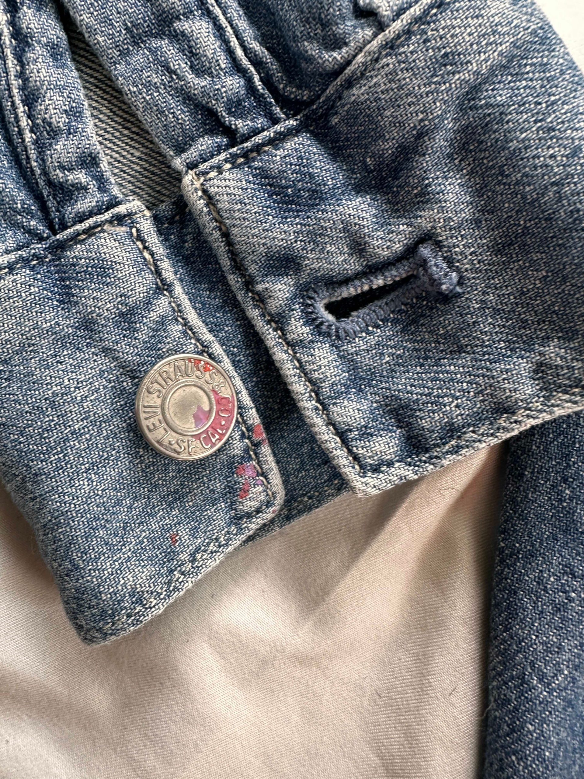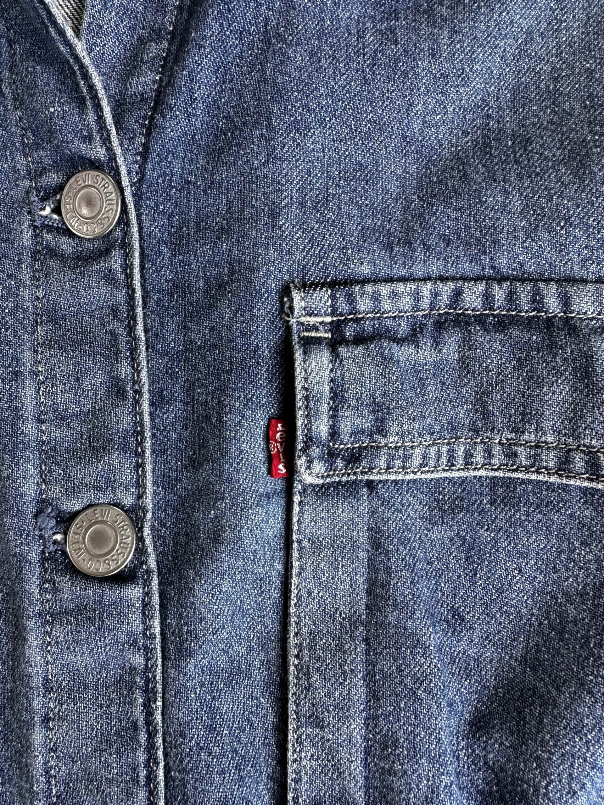 Item Condition: Well-Loved This is a pre-owned Levi’s piece. We have checked it thoroughly and noted any specific wear, such as the pink marks on the cuff button. Consequently, the price reflects its lived-in character. Please review the measurement photos carefully as all sales are final.
