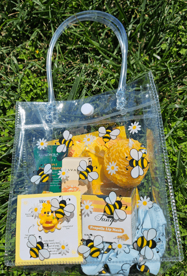 Indulge in the healing power of honey or gift a moment of relaxation with this beautifully curated honey bee pamper set. This bundle comes pre-packed in a charming, reusable transparent tote, making it an ideal “ready-to-go” gift.