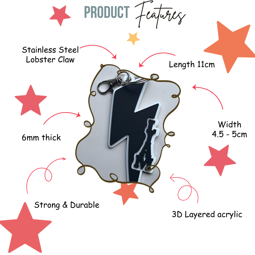Personalised Lightning Bolt Acrylic Backpack Tag