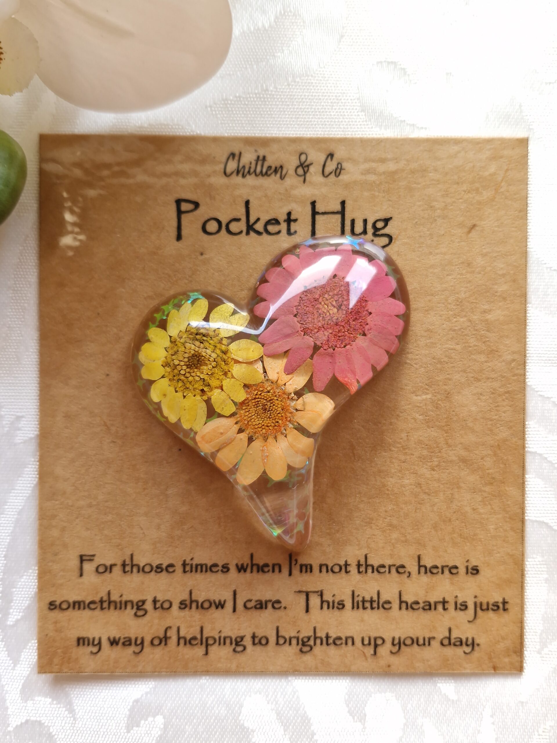 Pink Orange Yellow Daisy Heart Pocket Hug