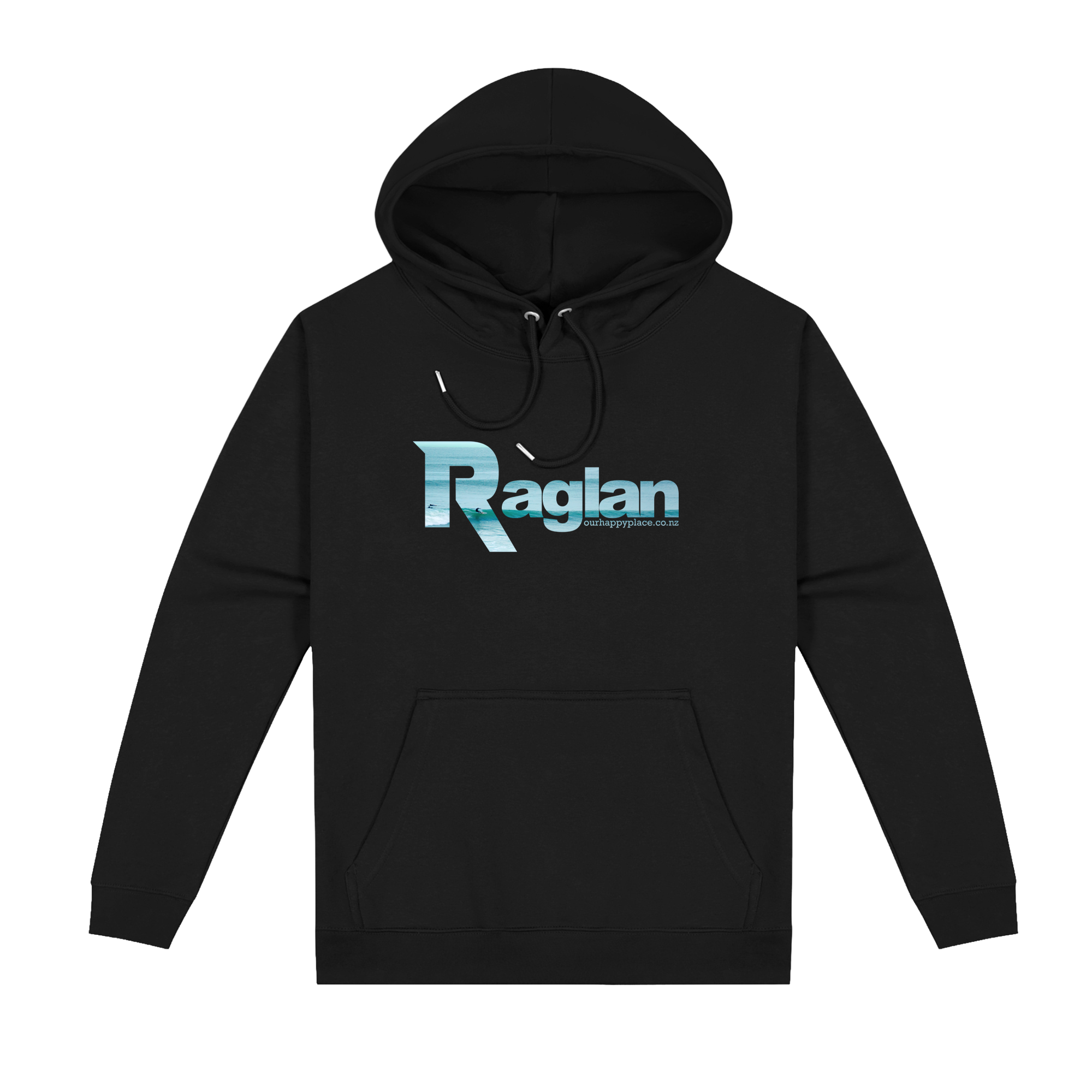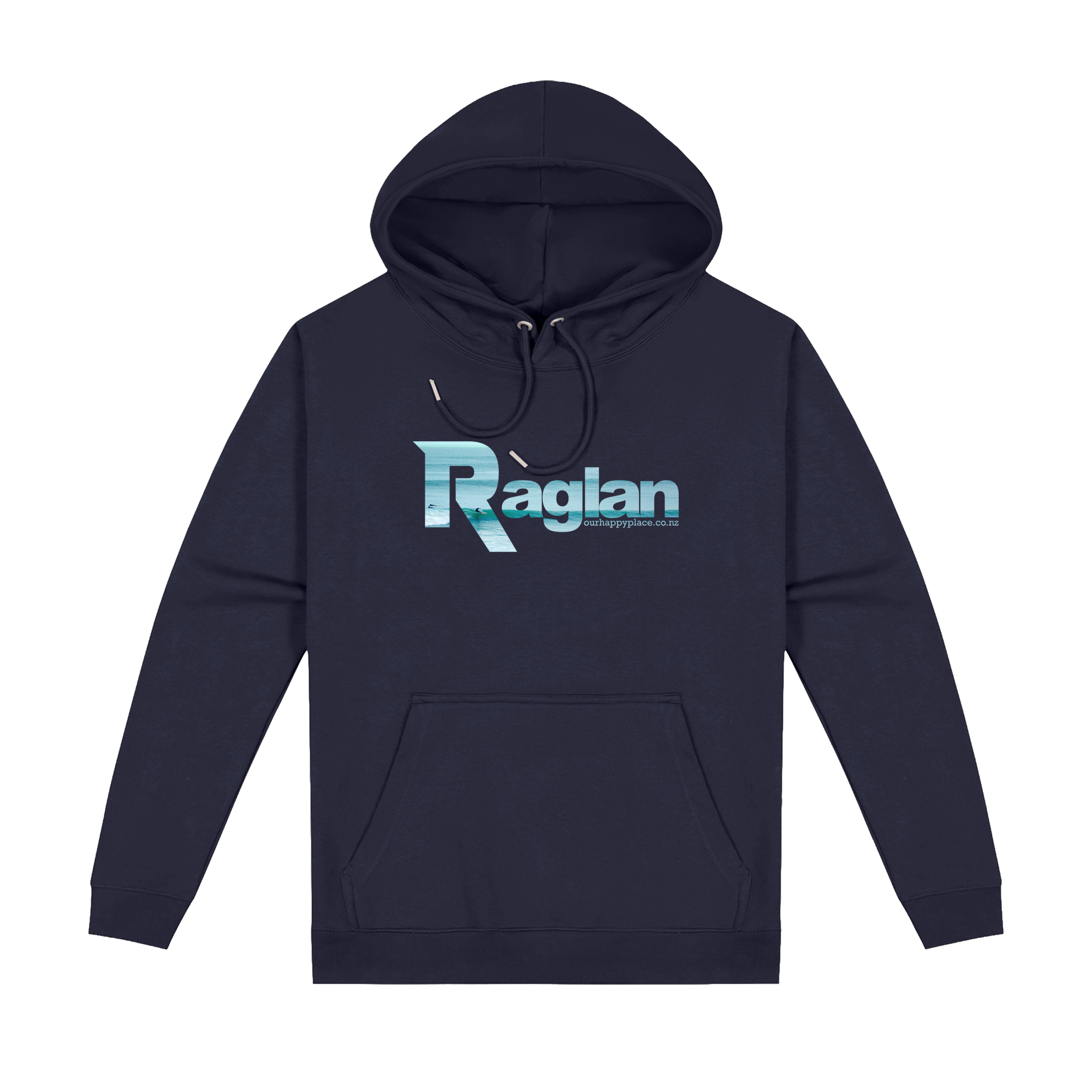 Raglan is one of New Zealand’s most iconic surf towns, known for its world-famous waves and relaxed west coast atmosphere. This design features a real photograph of surfers in Raglan and embedded into the place name lettering – bringing that coastal feeling to life.