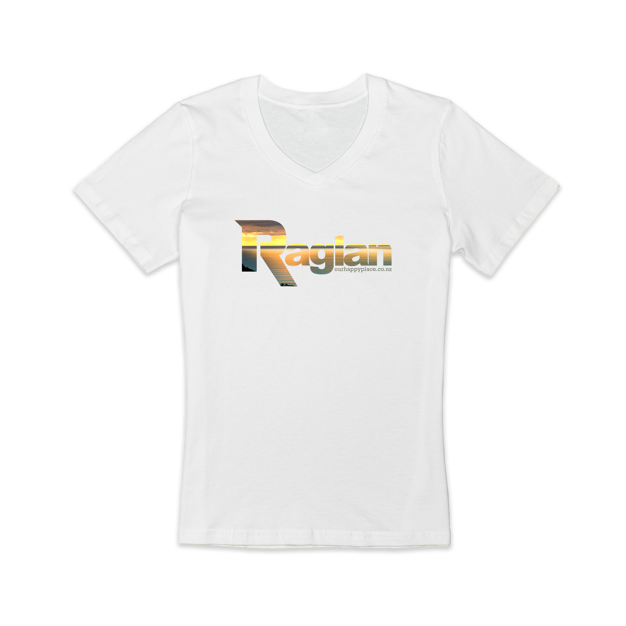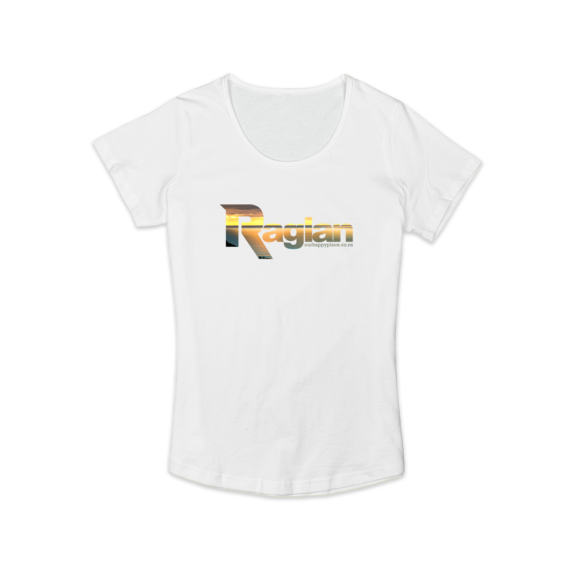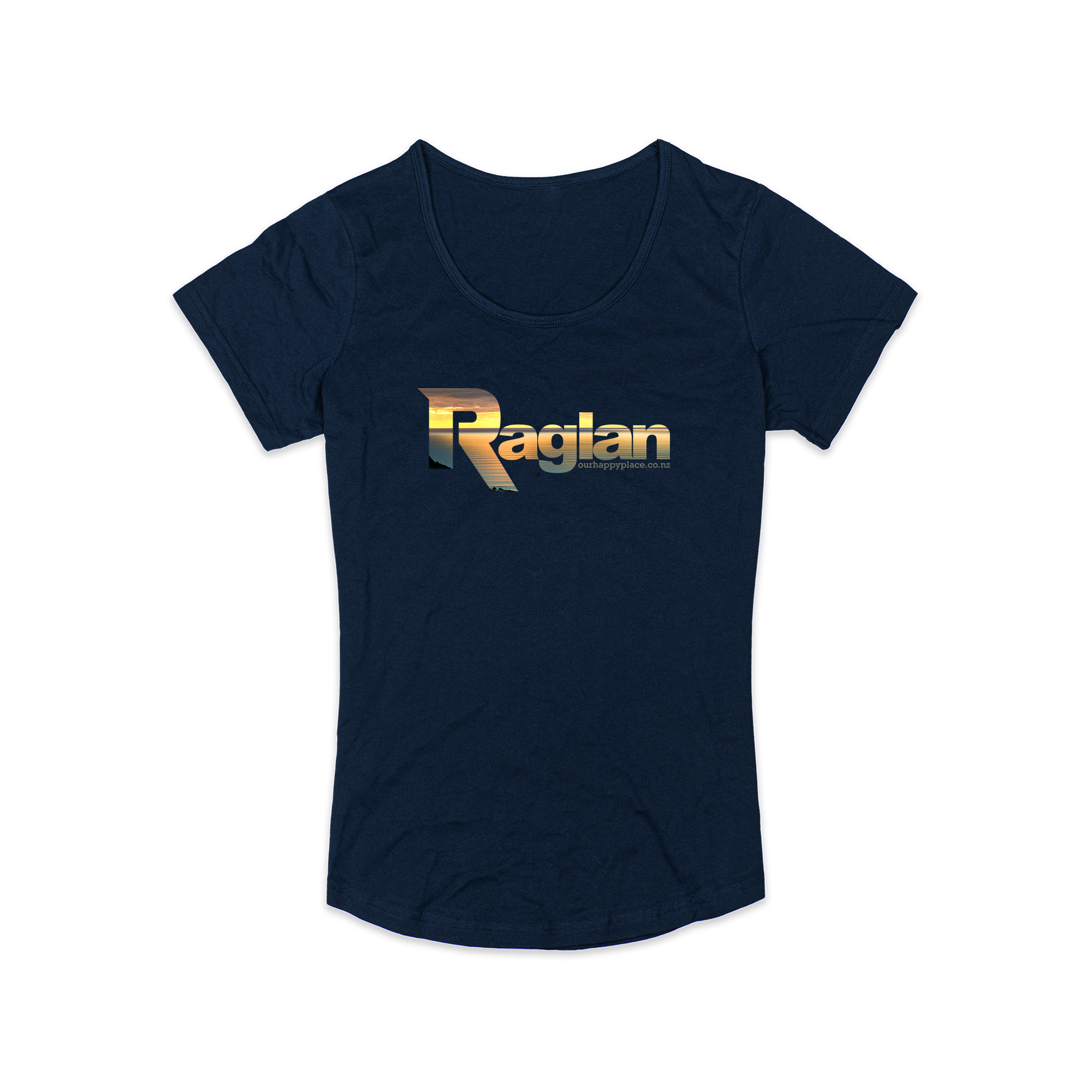 Raglan is one of New Zealand’s most iconic surf towns, known for its world-famous waves and relaxed west coast atmosphere. This design features a real photograph of a sunset captured at Indicators in Raglan embedded into the place name lettering – bringing that coastal feeling to life.