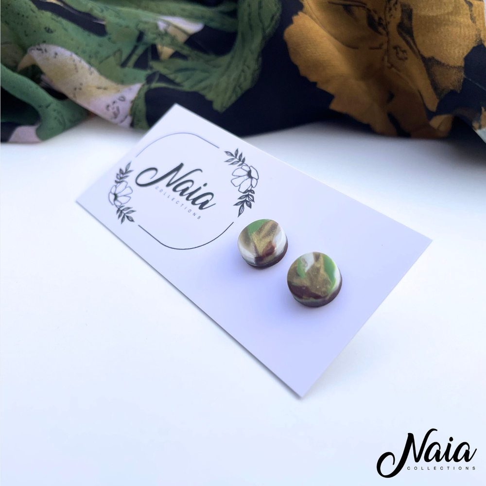 These round studs are one of many from our Autumn Collection, hand made from high quality polymer clay which are set on surgical steel posts. The colour is hand mixed by me so this design is unique which will make you stand out from the crowd. Instead of using super glue the stud posts are embedded into the clay ensuring they will stand the test of time.