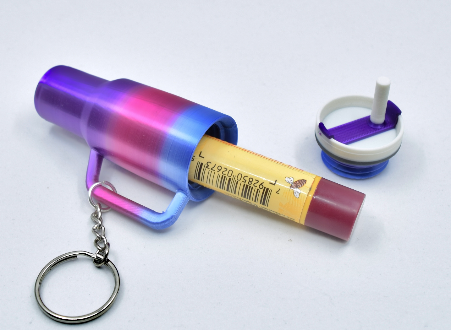 Designed to look like a tiny Stanley-style cup, this compact accessory securely stores your favorite lip balm while doubling as a fun keychain. Lightweight and durable, it easily clips onto keys, bags, or backpacks for on-the-go convenience. Available in a variety of vibrant colors and unique finishes, it’s the perfect blend of practicality and personality—great for everyday use or as a cute gift.