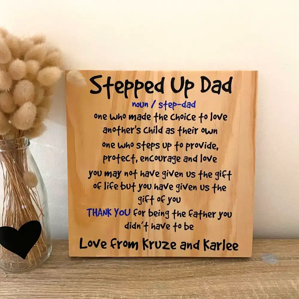 Looking for the perfect gift for your kids’ Stepped-Up Dad – the one who chose to love, guide, and be there every day? This handmade wooden sign is a heartfelt way to say thank you to someone truly special.