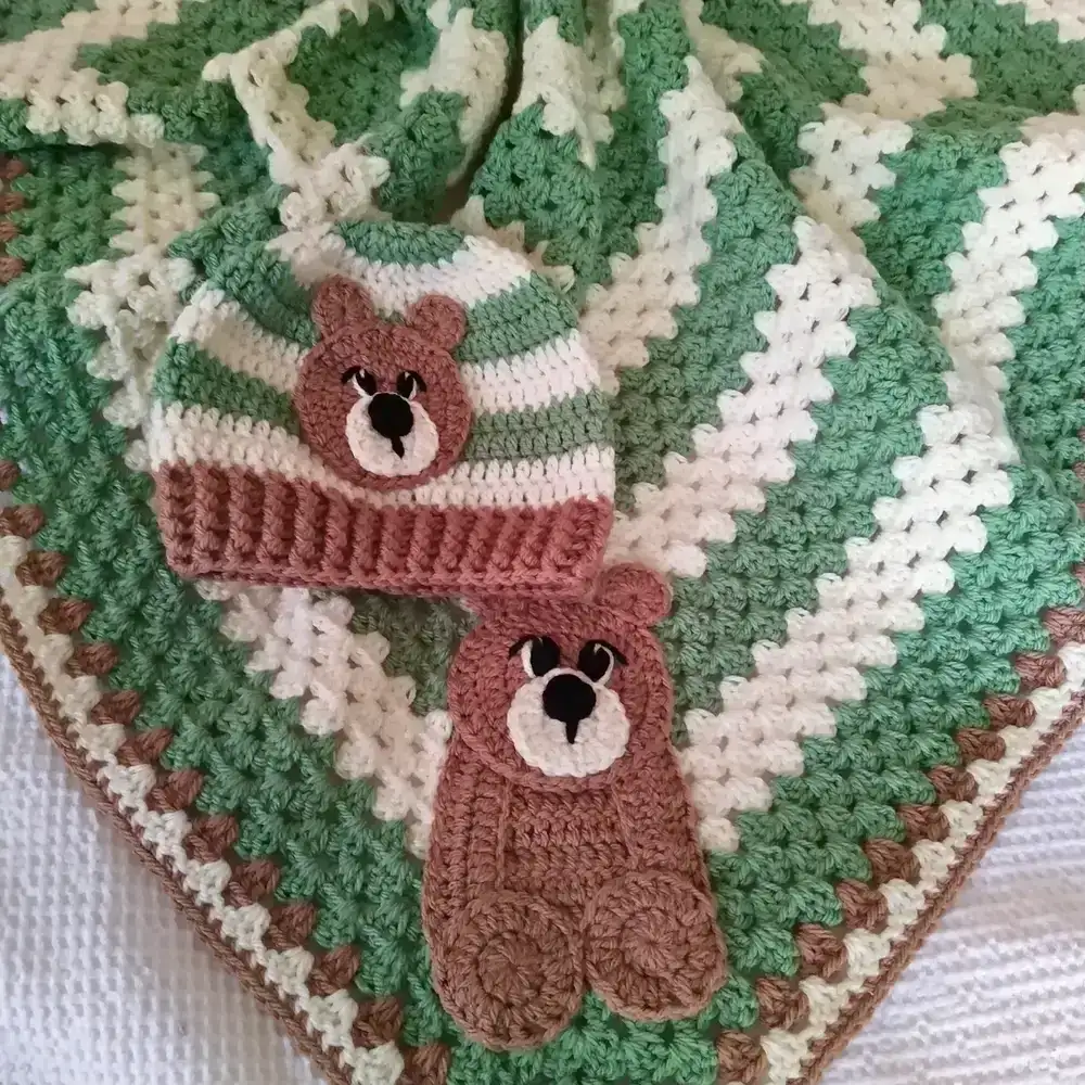 The Teddy Snuggle Set – Handmade Crochet Baby Blanket & FREE Hat