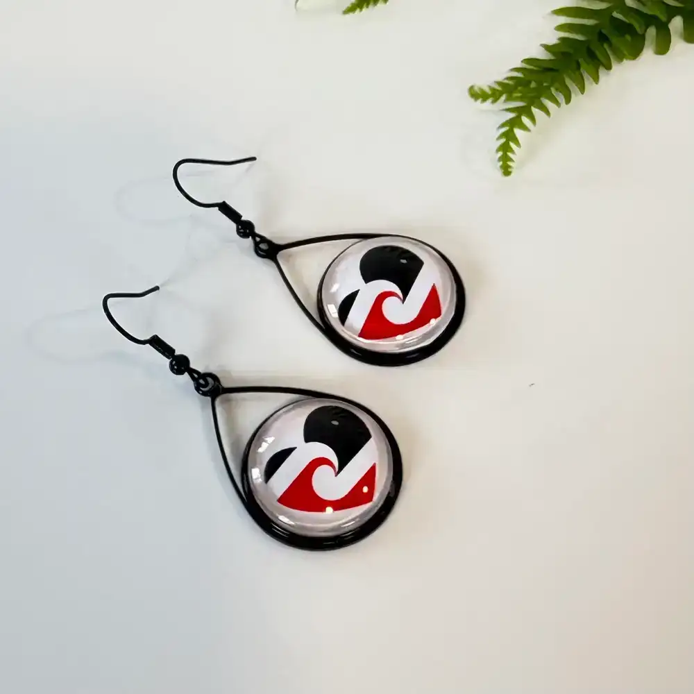 The 20mm domes are set on black earring bezel trays and black shepherd hooks. They measure approx 25mm in length.