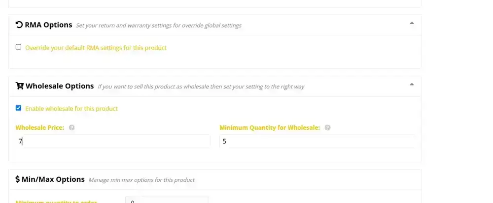 Scroll down to wholesale options and tick ‘enable wholesale for this product’